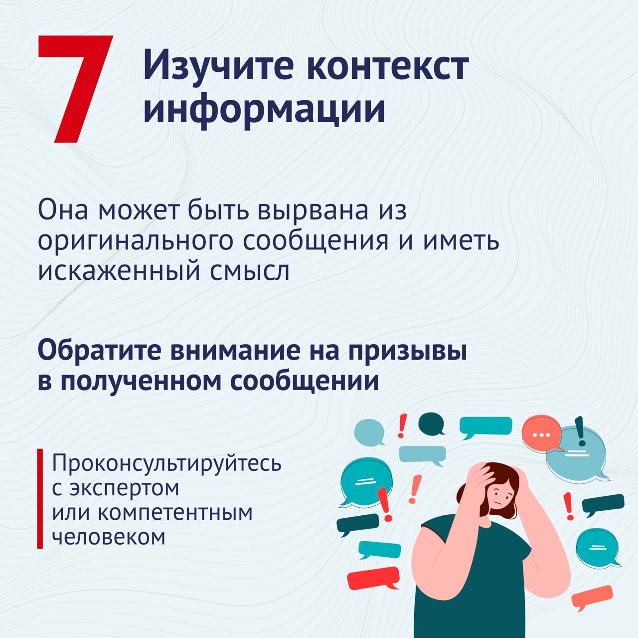 7. Понимайте контекст. Фейки искажают смысл, вырывая фразы.