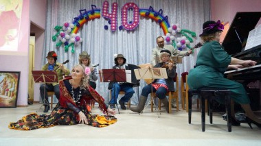 Необычный музыкальный подарок подготовили бывшие выпускники детской музыкальной школы Е. Голикова, Е. Шульга и шуточный ансамбль «Весёлые нотки, луженые глотки». Номер был не только удивительным и весёлым, но и доказал, что мастерство невозможно забыть.