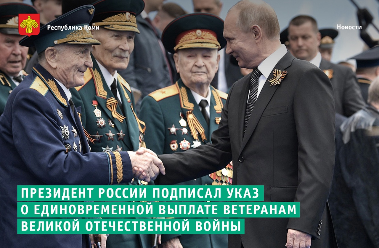 Президент России Владимир Путин подписал указ о единовременных выплатах ветеранам Великой Отечественной войны в связи с 75-й годовщиной ПобедыПрезидент России Владимир Путин подписал указ о единовременных выплатах ветеранам Великой Отечественной войны в связи с 75-й годовщиной Победы