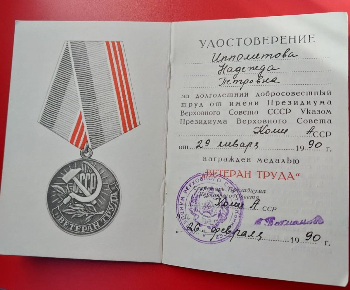 За многолетний и добросовестный труд Надежда Петровна награждена медалью «Ветеран труда», имеет также медаль «Дети войны», неоднократно награждалась почетными грамотами и благодарностями, является «Отличником социалистического соревнования»,