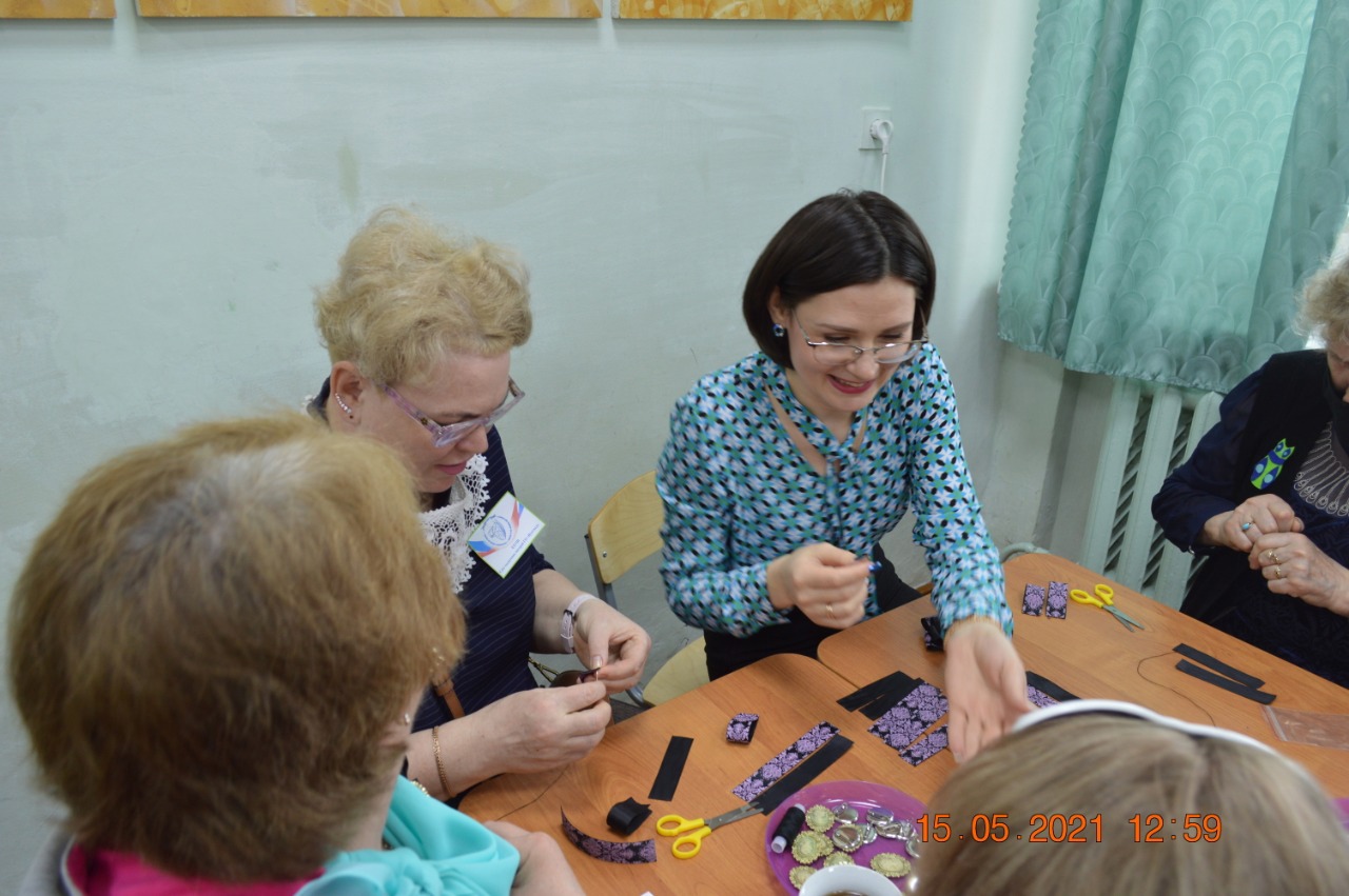 На мастер-классах ближайшим родственникам солдат было предложено научиться красиво и оригинально завязывать платки. Платок является незаменимым аксессуаром каждой женщины, он не только защищает от холода и солнца, но и дополняет подобранный образ. Также мамы и бабушки изготовили каждая для себя винтажные и весьма стильные броши-камеи, а из фетра – различные интересные поделки. Все эти творческие изделия останутся у них на долгую память о слете матерей.